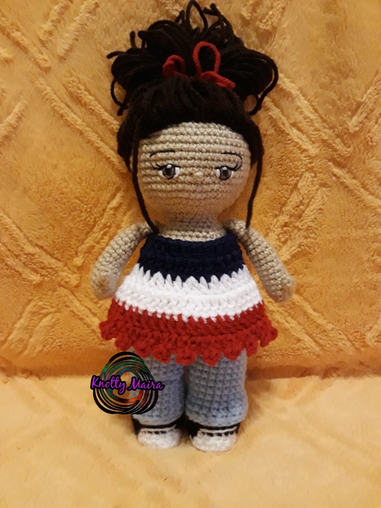 This is the Meme Doll. Because it’s all about ME. Meaning that you can customize her by changing her outfit to meet your child’s needs/likes……Or your own lol. Because why not? I like dolls too lol. For this reason, doll and outfit patterns are sold separately. The doll pattern comes with instructions for a girl hair cap , 2 boy hair caps, and eye embroidery instructions just in case you want to go that rout but have never tried it. Below are the pictures of the outfits on the doll. Click the picture for ravelry or click the link below for love crafts: https://www.lovecrafts.com/en-us/p/the-meme-doll-crochet-pattern-by-knotty-maira